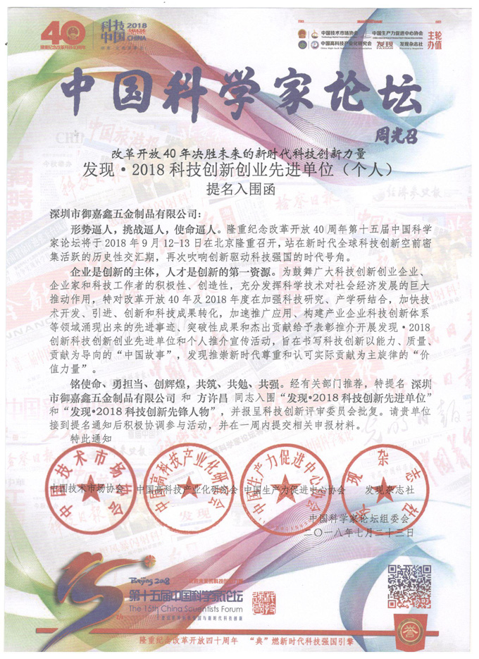 Das 15.China Scientists Forum findet von September 12 bis 13.2018 in Peking statt. Herr Fang Xuchang, Vorsitzender und Geschäftsführer von Shenzhen Yujiaxin Hardware Co., Ltd. wird ebenfalls eingeladen, an diesem Forum teilzunehmen. Gemeinsam mit Menschen aus allen Gesellschaftsschichten werden wir Ideen austauschen und Erfolge zeigen und aktiv zur Entwicklung wissenschaftlicher Innovationen in China beitragen.